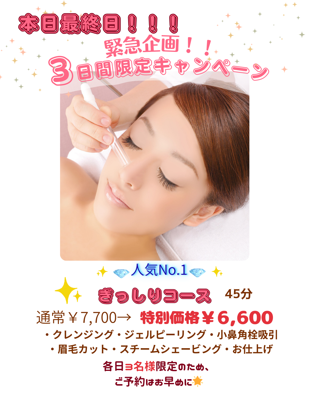 【口コミ平均4.6以上】3/1 12時~◎【3月限定】潤いコース60分¥1,1220→¥10,000 メンバー¥9,000